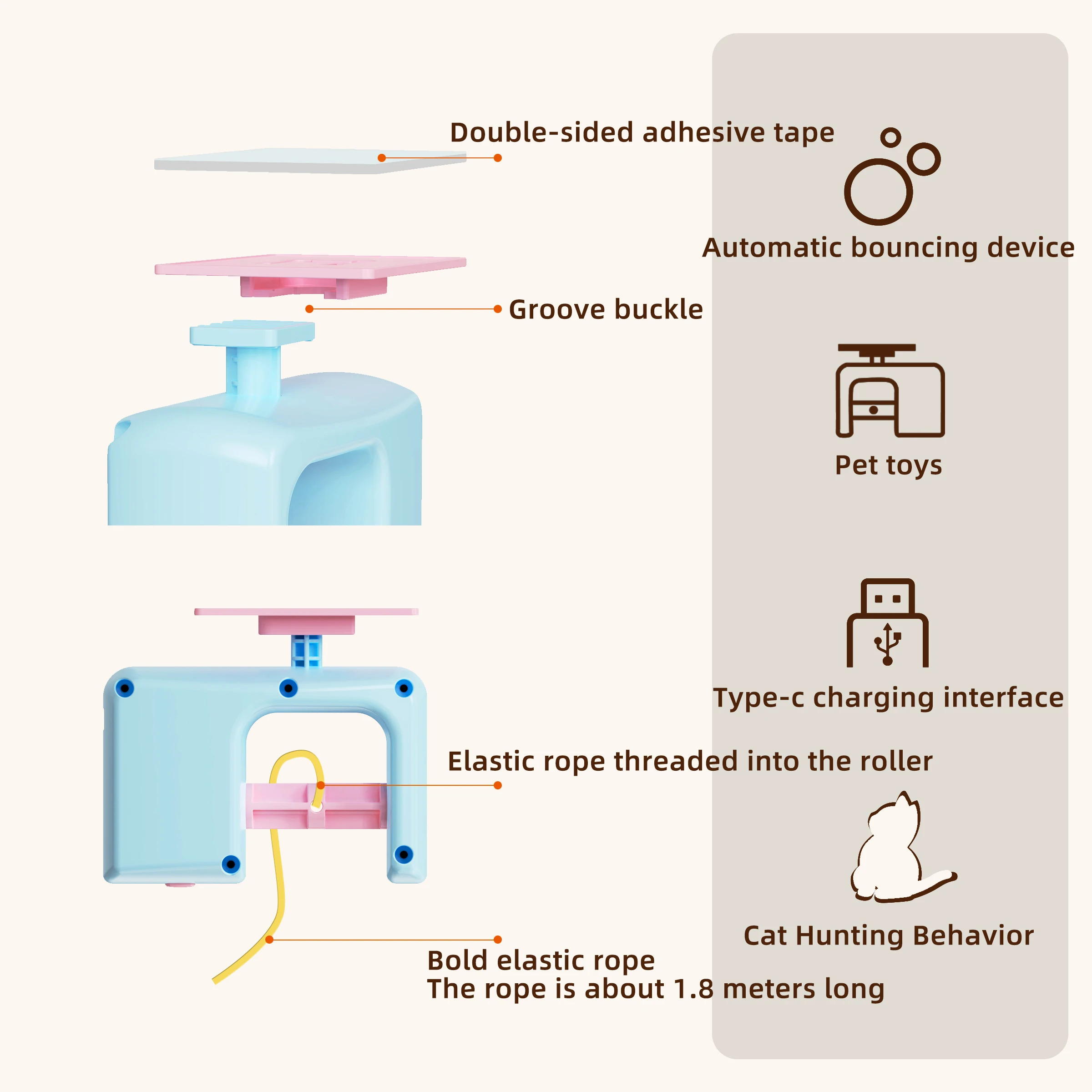 Hang it on a door handle and walk away. This self-entertaining cat toy suspends from any door handle or hook via elastic rope, and its electric motor flaps the wings to mimic a real bird in motion. The elastic rope makes the movement unpredictable — exactly what keeps cats from losing interest.