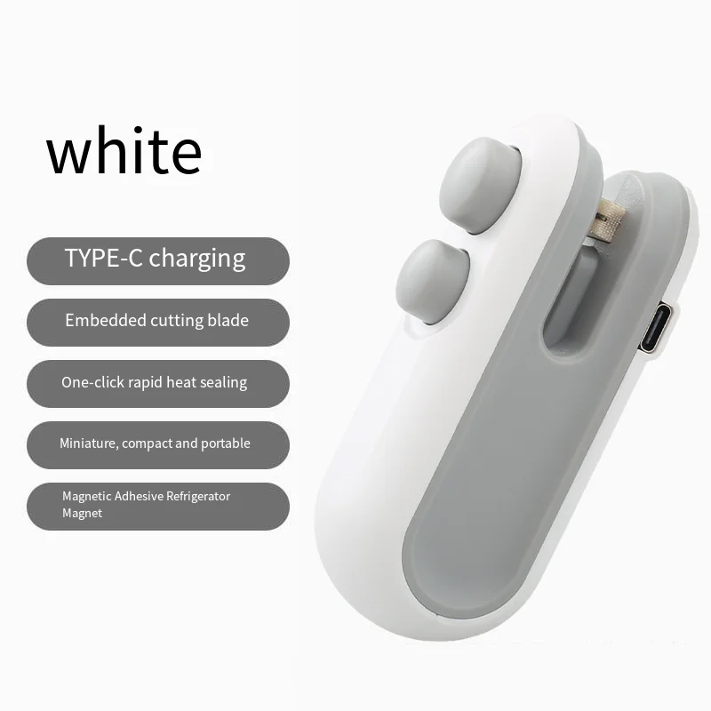 Simple, compact, and actually useful. This handheld mini heat sealer clamps onto the edge of any plastic bag and seals it in seconds with gentle heat. Press, hold, slide — done.