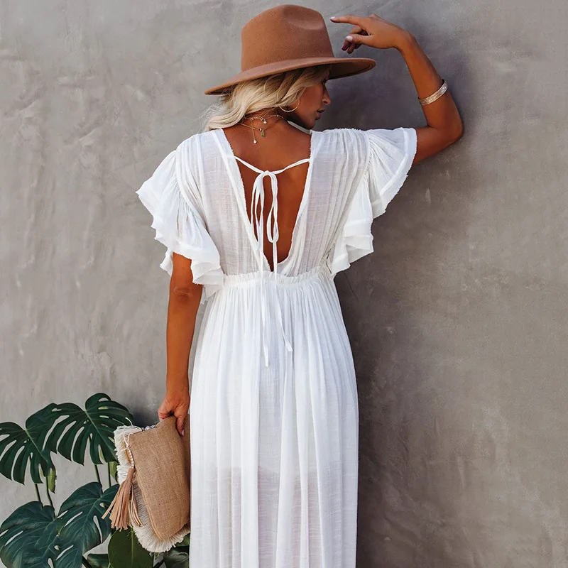 A breezy open-front long kimono cardigan with button detailing — an ideal swimsuit cover-up, beach wrap, or lightweight layering piece for resort and casual wear.