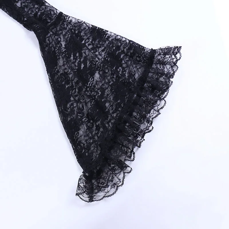 Lace Shrugs Sheer Crop Tops Long Bell Sleeves Cardigan Women Dark Gothic Wedding Punk Sexy Crochet Bolero Cover Up Shirt